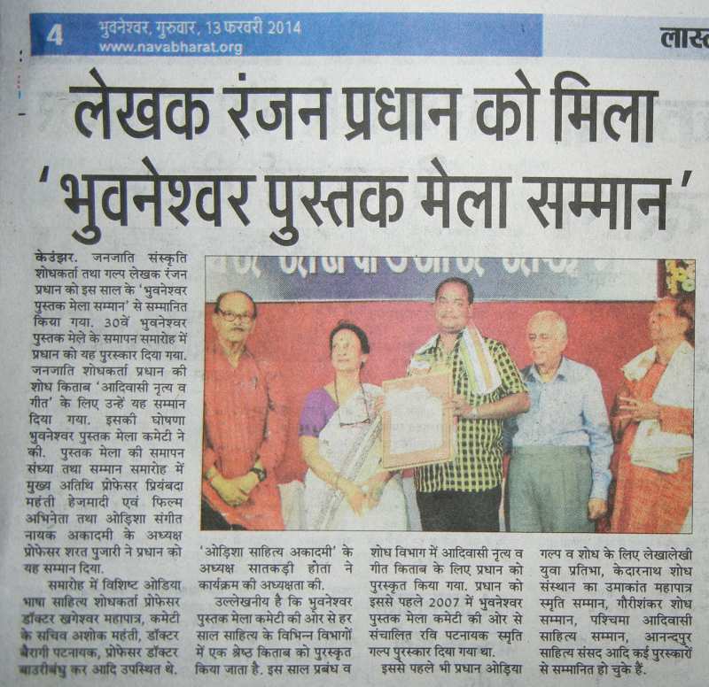 the-navabharat-times-ranjan-pradhan-getting-bhubaneswar-book-fair-award-2014